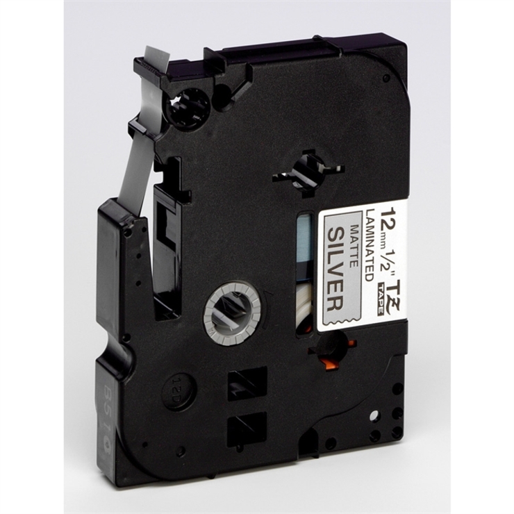 brother® Schriftbandkassette TZe, Polyester, laminiert, 12 mm x 8 m, schwarz auf silber matt