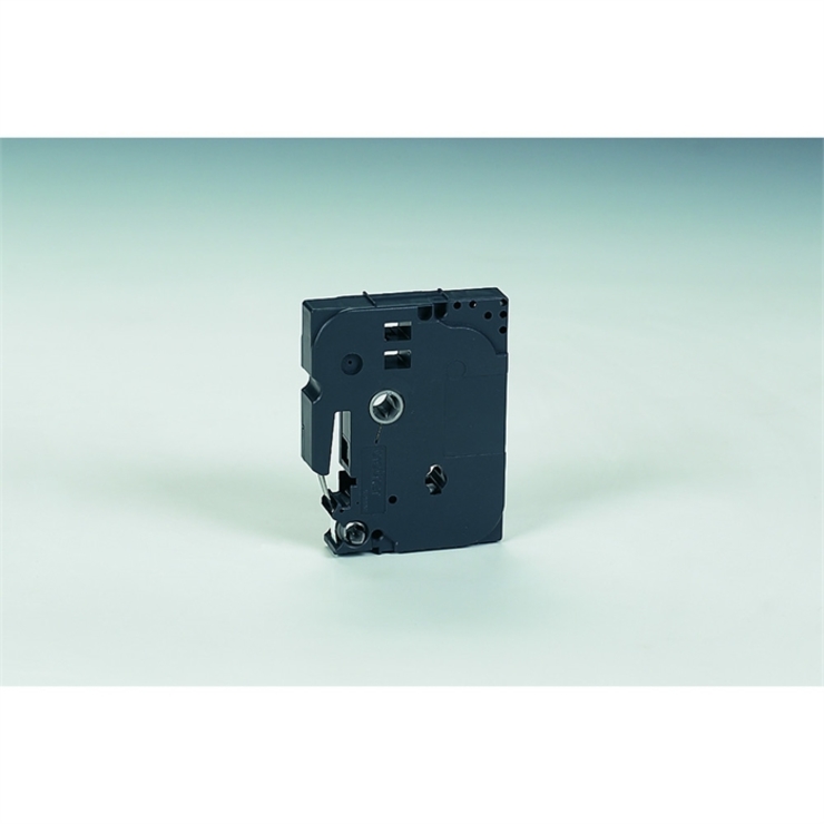 Schriftbandkassette TZE211. Material: laminiert ausgeführt. Größe (L x B)->unterschiedl. Einheiten: 8 m x 6 mm. Farbe Druck / Farbe Schriftband: schwarz / weiß.