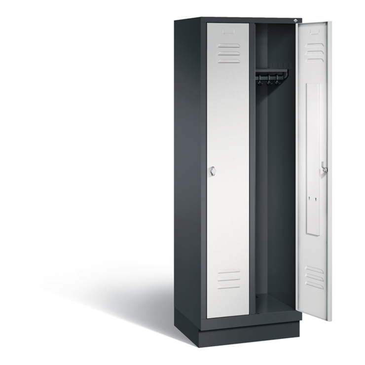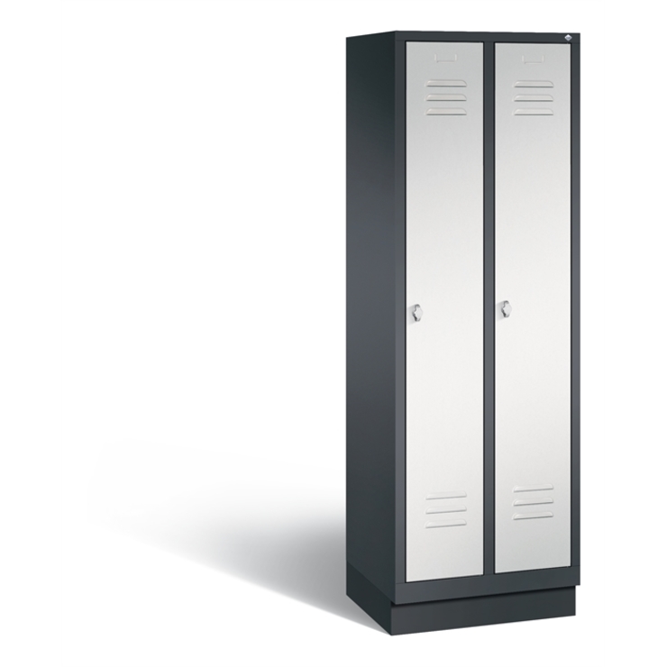 Stahl-Garderobenschrank Classic, als Straßen- und Berufskleidungsschrank 2 Abteile für 1 Person, Abteilbreite 400 mm, Türen zueinanderschlagend für gemeinsamen Verschluss, Korpus aus stabiler Stahlkonstruktion mit hochwertiger Einbrennbeschichtung für hohe UV- und Korrosionsbeständigkeit, innen je Abteil 1 Ablageboden, darunter 1 stabile Garderobenstange aus Ovalprofil mit 3 verdrehsicheren Schiebehaken, Schrankboden hinten mit Lüftungsöffnungen für optimale Luftzirkulation, auf 100 mm... (mehr)? Papersmart hilft Ihnen, den besten Anbieter für Ihren gesamten Warenkorb zu ermitteln.