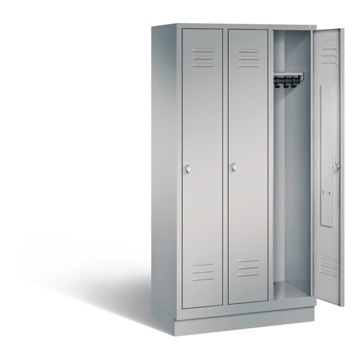 Stahl-Z-Garderobenschrank Classic, 2 Abteile jeweils z-förmig unterteilt für 4 Personen, komfortable Hängemöglichkeit langer Kleidungsstücke trotz geringem Platzangebot, Z-Türen mit speziellem Faltmechanismus und Anschlagsdämpfer, doppelwandig für hohe Stabilität, Türaufhängung durchgängig mit robustem Drehstangen-Scharnier, innen je Fach 1 stabile Garderobenstange aus Ovalprofil mit 3 verdrehsicheren Schiebehaken, mit Belüftungs-Lochbild in der Rückwand und 10 mm Wandabstandhalter,... (mehr)? Papersmart hilft Ihnen, den besten Anbieter für Ihren gesamten Warenkorb zu ermitteln.