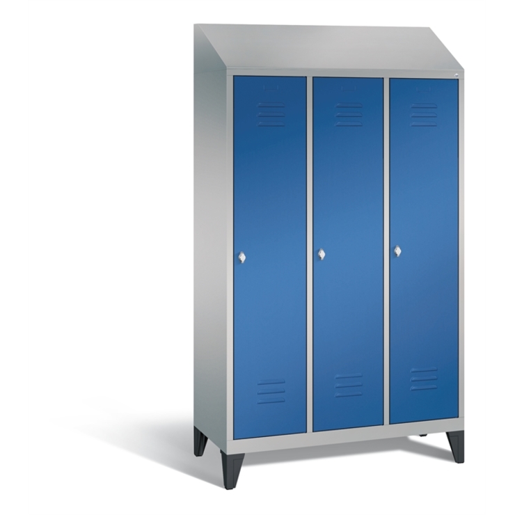 Stahl-Garderobenschrank Classic, 3 Abteile mit 3 Fächern, Abteilbreite 300 mm, Korpus aus stabiler Stahlkonstruktion mit hochwertiger Einbrennbeschichtung für hohe UV- und Korrosionsbeständigkeit, auf 150 mm hohen Füßen aus Kunststoff für erweiterten Korrosionsschutz, 9 Zylinderschlösser mit je 2 Schlüsseln, Schließkreis bis 1000 verschiedene Schließungen, Türen mit Anschlagsdämpfer, Türaufhängung in Drehbolzen, Maße (H x B x T): 1850 x 900 x 500 mm, Korpus: RAL 7035 Lichtgrau, Türen... (mehr)? Papersmart hilft Ihnen, den besten Anbieter für Ihren gesamten Warenkorb zu ermitteln.