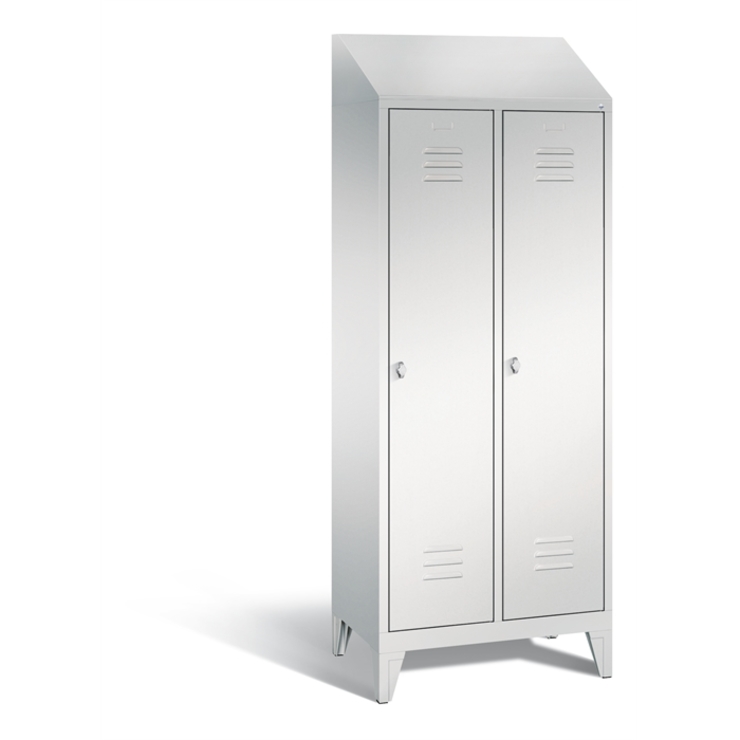 Doppelstöckiger Stahl-Garderobenschrank Evolo, 2 Abteile mit je 2 Fächern, Abteilbreite 400 mm, Korpus aus stabiler Stahlkonstruktion mit hochwertiger Einbrennbeschichtung für hohe UV- und Korrosionsbeständigkeit, innen je Fach 1 stabile Garderobenstange aus Ovalprofil mit 3 verdrehsicheren Schiebehaken, auf 100 mm hohem Sockel, mit Kunststoffgleitern als praktischer Schrank- und Fußbodenschutz, vorne zurückgesetzt, 4 Ergonomische Sicherheits-Drehriegel für Vorhängeschlösser inkl.... (mehr)? Papersmart hilft Ihnen, den besten Anbieter für Ihren gesamten Warenkorb zu ermitteln.