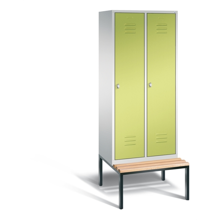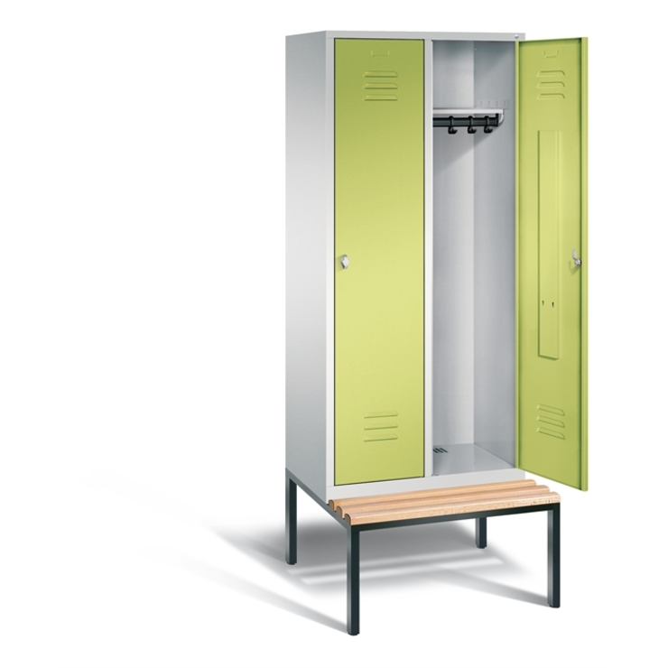 Doppelstöckiger Stahl-Garderobenschrank Evolo, 2 Abteile mit je 2 Fächern, Abteilbreite 400 mm, Korpus aus stabiler Stahlkonstruktion mit hochwertiger Einbrennbeschichtung für hohe UV- und Korrosionsbeständigkeit, innen je Fach 1 Ablageboden, darunter 1 stabile Garderobenstange aus Ovalprofil mit 3 verdrehsicheren Schiebehaken, auf untergebauter Sitzbank, Gestell aus stabilem Vierkant-Stahlrohr 30 x 30 mm, mit verstellbaren Bodengleitern für einfachen Niveauausgleich, 4 Ergonomische... (mehr)? Papersmart hilft Ihnen, den besten Anbieter für Ihren gesamten Warenkorb zu ermitteln.