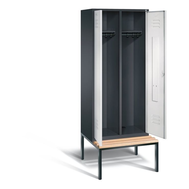 Stahl-Garderobenschrank Classic, als Straßen- und Berufskleidungsschrank 2 Abteile für 1 Person, Abteilbreite 400 mm, Türen zueinanderschlagend für gemeinsamen Verschluss, Korpus aus stabiler Stahlkonstruktion mit hochwertiger Einbrennbeschichtung für hohe UV- und Korrosionsbeständigkeit, innen je Abteil 1 Ablageboden, darunter 1 stabile Garderobenstange aus Ovalprofil mit 3 verdrehsicheren Schiebehaken, Schrankboden hinten mit Lüftungsöffnungen für optimale Luftzirkulation, auf 100 mm... (mehr)? Papersmart hilft Ihnen, den besten Anbieter für Ihren gesamten Warenkorb zu ermitteln.