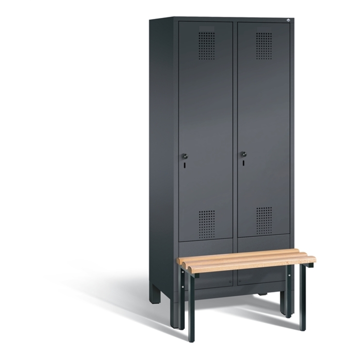 Stahl-Garderobenschrank Evolo, als Straßen- und Berufskleidungsschrank, 4 Abteile für 2 Personen, Abteilbreite 300 mm, je 1 Tür über 2 Abteile, rechts angeschlagen, Korpus aus stabiler Stahlkonstruktion mit hochwertiger Einbrennbeschichtung für hohe UV- und Korrosionsbeständigkeit, innen je Abteil 1 Ablageboden, darunter 1 stabile Garderobenstange aus Ovalprofil mit 3 verdrehsicheren Schiebehaken, Schrankboden hinten mit großflächigem Luftdurchlass für optimale Luftzirkulation, auf... (mehr)? Papersmart hilft Ihnen, den besten Anbieter für Ihren gesamten Warenkorb zu ermitteln.