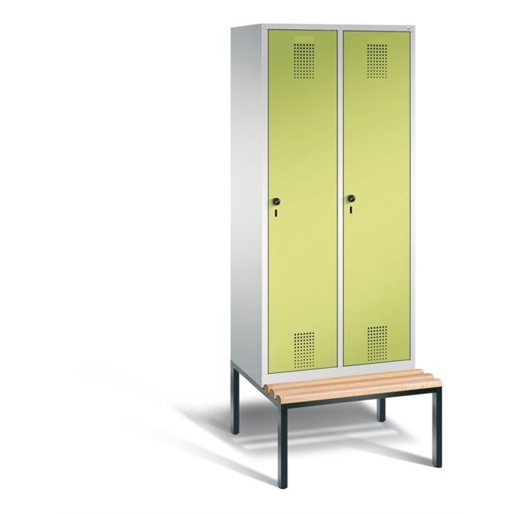 Doppelstöckiger Stahl-Garderobenschrank Evolo, 2 Abteile mit je 2 Fächern, Abteilbreite 400 mm, Korpus aus stabiler Stahlkonstruktion mit hochwertiger Einbrennbeschichtung für hohe UV- und Korrosionsbeständigkeit, innen je Fach 1 Ablageboden, darunter 1 stabile Garderobenstange aus Ovalprofil mit 3 verdrehsicheren Schiebehaken, auf untergebauter Sitzbank, Gestell aus stabilem Vierkant-Stahlrohr 30 x 30 mm, mit verstellbaren Bodengleitern für einfachen Niveauausgleich, 4 Ergonomische... (mehr)? Papersmart hilft Ihnen, den besten Anbieter für Ihren gesamten Warenkorb zu ermitteln.