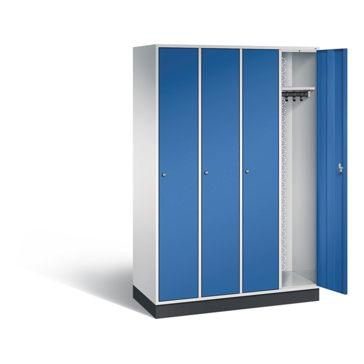 Doppelstöckiger Stahl-Garderobenschrank Classic, 2 Abteile mit 2 Fächern, Abteilbreite 400 mm, Korpus aus stabiler Stahlkonstruktion mit hochwertiger Einbrennbeschichtung für hohe UV- und Korrosionsbeständigkeit, innen je Fach 1 stabile Garderobenstange aus Ovalprofil mit 3 verdrehsicheren Schiebehaken, auf 100 mm hohem Sockel, mit Kunststoffgleitern als praktischer Schrank- und Fußbodenschutz, vorne zurückgesetzt, 4 Drehriegel für Vorhängeschlösser, 4 Türen mit Anschlagsdämpfer und... (mehr)? Papersmart hilft Ihnen, den besten Anbieter für Ihren gesamten Warenkorb zu ermitteln.