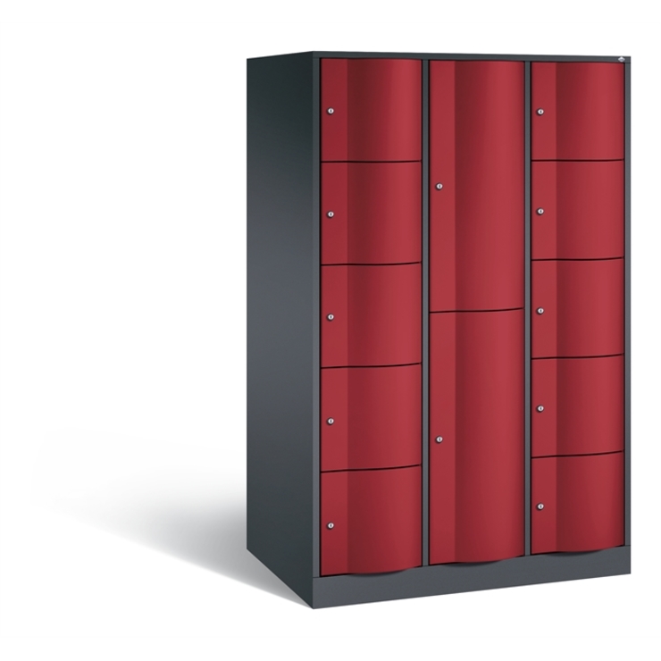 Stahl-Fächerschrank Serie 8070, 3 Abteile mit je 5 Fächern, Korpus aus stabiler Stahlkonstruktion mit hochwertiger Einbrennbeschichtung für hohe UV- und Korrosionsbeständigkeit, Türen doppelwandig für hohe Stabilität, Türaufhängung oben und unten in Drehbolzen, rechts angeschlagen, inkl. Türöffnungsbegrenzer 90 Grad, als Schutz vor Überdehnen der Tür, auf 100 mm hohem Sockel, 15 Zylinderschlösser mit je 2 Schlüsseln, Schließkreis bis 1000 verschiedene Schließungen, Maße (H x B x T):... (mehr)? Papersmart hilft Ihnen, den besten Anbieter für Ihren gesamten Warenkorb zu ermitteln.