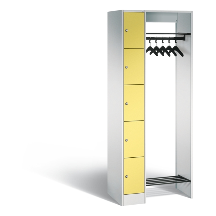 C+P Offene Garderobe Serie 8070, H1950xB740xT480mm, Korpus Lichtgrau, Fronten Schwefelgelb