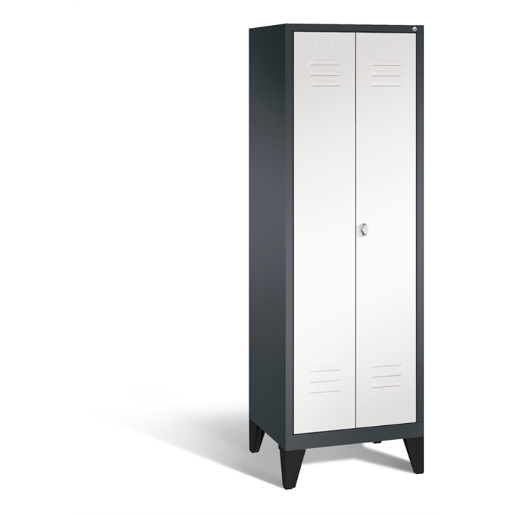 Doppelstöckiger Stahl-Garderobenschrank Classic, 2 Abteile mit je 2 Fächern, Abteilbreite 300 mm, Korpus aus stabiler Stahlkonstruktion mit hochwertiger Einbrennbeschichtung für hohe UV- und Korrosionsbeständigkeit, innen je Fach 1 stabile Garderobenstange aus Ovalprofil mit 3 verdrehsicheren Schiebehaken, auf 150 mm hohen Füßen, aus Kunststoff für optimalen Korrosionsschutz, 4 Drehriegel für Vorhängeschlösser, 4 Türen mit Anschlagsdämpfer und mittiger Verstärkung für hohe Stabilität,... (mehr)? Papersmart hilft Ihnen, den besten Anbieter für Ihren gesamten Warenkorb zu ermitteln.