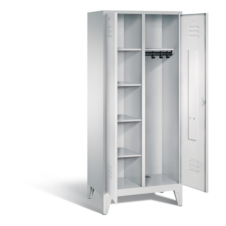 Doppelstöckiger Stahl-Garderobenschrank Evolo, 4 Abteile mit je 2 Fächern, Abteilbreite 300 mm, Korpus aus stabiler Stahlkonstruktion mit hochwertiger Einbrennbeschichtung für hohe UV- und Korrosionsbeständigkeit, innen je Fach 1 stabile Garderobenstange aus Ovalprofil mit 3 verdrehsicheren Schiebehaken, auf 100 mm hohem Sockel, mit Kunststoffgleitern als praktischer Schrank- und Fußbodenschutz, vorne zurückgesetzt, 8 Ergonomische Sicherheits-Drehriegel für Vorhängeschlösser inkl.... (mehr)? Papersmart hilft Ihnen, den besten Anbieter für Ihren gesamten Warenkorb zu ermitteln.