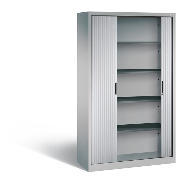 Stahl-Schiebetürenschrank Acurado-2000, Korpus aus stabiler Stahlkonstruktion mit hochwertiger Einbrennbeschichtung für hohe UV-Beständigkeit, mit Kunststoffgleitern als praktischer Schrank- und Fußbodenschutz, hohe Flexibilität der Inneneinrichtung durch Höhenverstellbarkeit im 15 mm Raster, Türen verstärkt für hohe Stabilität, leichtgängige Bedienung durch Leichtlaufrollen in spezieller Schienenführung, 1 Wechselzylinder matt vernickelt mit 2 Schlüsseln, 2 Ergonomische Bügelgriffe... (mehr)? Papersmart hilft Ihnen, den besten Anbieter für Ihren gesamten Warenkorb zu ermitteln.