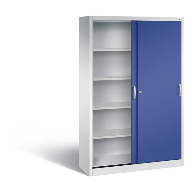 Stahl-Schiebetürenschrank Asisto, Korpus aus stabiler Stahlkonstruktion mit filigraner Kantenoptik und hochwertiger Einbrennbeschichtung für hohe UV-Beständigkeit, mit integrierter Niveauregulierung, bequem von innen bedienbar, hohe Flexibilität der Inneneinrichtung durch Höhenverstellbarkeit im 15 mm Raster, 1 Wechselzylinder matt vernickelt mit 2 Schlüsseln, 2 Ergonomische Design-Bügelgriffe für einfache Bedienung, aus Metall, matt vernickelt, 2 Stahltüren doppelwandig, gedämmt für... (mehr)? Papersmart hilft Ihnen, den besten Anbieter für Ihren gesamten Warenkorb zu ermitteln.