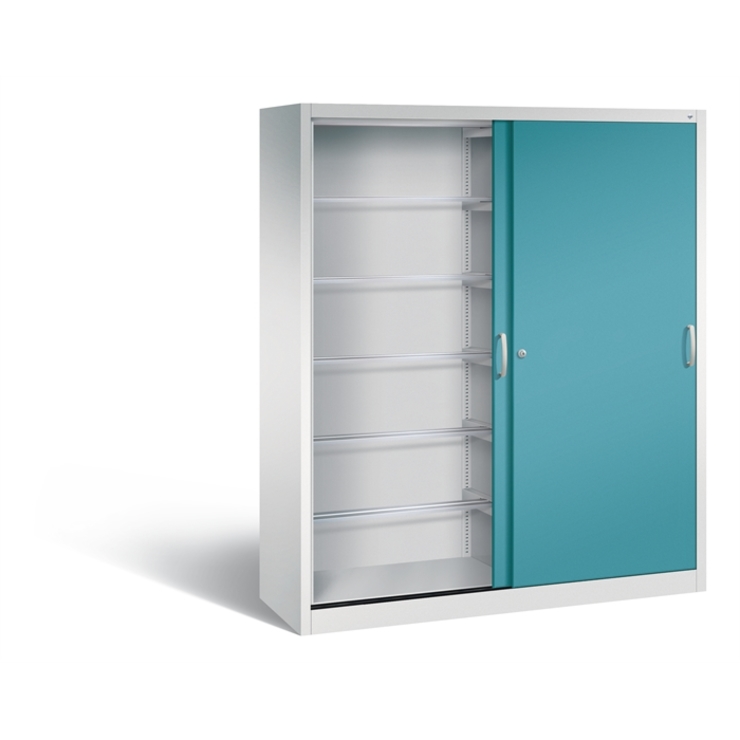Stahl-Schiebetürenschrank Acurado-2000, Korpus aus stabiler Stahlkonstruktion mit hochwertiger Einbrennbeschichtung für hohe UV-Beständigkeit, mit Kunststoffgleitern als praktischer Schrank- und Fußbodenschutz, hohe Flexibilität der Inneneinrichtung durch Höhenverstellbarkeit im 15 mm Raster, Türen verstärkt für hohe Stabilität, leichtgängige Bedienung durch Leichtlaufrollen in spezieller Schienenführung, 1 Wechselzylinder matt vernickelt mit 2 Schlüsseln, 2 Ergonomische Bügelgriffe... (mehr)? Papersmart hilft Ihnen, den besten Anbieter für Ihren gesamten Warenkorb zu ermitteln.