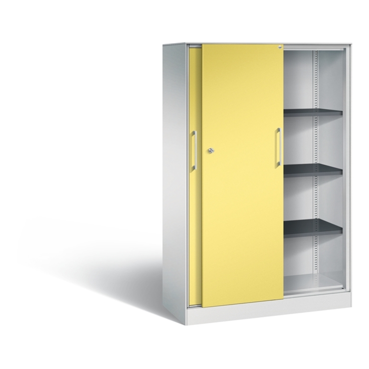 Stahl-Schiebetürenschrank Asisto, Korpus aus stabiler Stahlkonstruktion mit filigraner Kantenoptik und hochwertiger Einbrennbeschichtung für hohe UV-Beständigkeit, mit integrierter Niveauregulierung, bequem von innen bedienbar, hohe Flexibilität der Inneneinrichtung durch Höhenverstellbarkeit im 15 mm Raster, 1 Wechselzylinder matt vernickelt mit 2 Schlüsseln, 2 Ergonomische Design-Bügelgriffe für einfache Bedienung, aus Metall, matt vernickelt, 1 Abdeckplatte aus Stahl, 2 Stahltüren... (mehr)? Papersmart hilft Ihnen, den besten Anbieter für Ihren gesamten Warenkorb zu ermitteln.