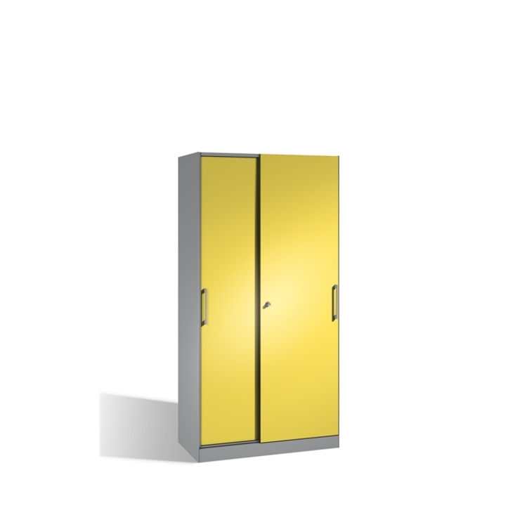 Stahl-Schiebetürenschrank Asisto, Korpus aus stabiler Stahlkonstruktion mit filigraner Kantenoptik und hochwertiger Einbrennbeschichtung für hohe UV-Beständigkeit, mit integrierter Niveauregulierung, bequem von innen bedienbar, hohe Flexibilität der Inneneinrichtung durch Höhenverstellbarkeit im 15 mm Raster, 1 Wechselzylinder matt vernickelt mit 2 Schlüsseln, 2 Ergonomische Design-Bügelgriffe für einfache Bedienung, aus Metall, matt vernickelt, 2 Stahltüren doppelwandig, gedämmt für... (mehr)? Papersmart hilft Ihnen, den besten Anbieter für Ihren gesamten Warenkorb zu ermitteln.