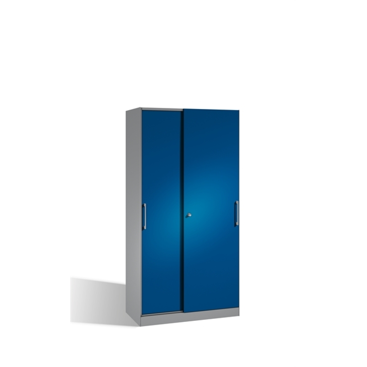 Stahl-Schiebetürenschrank Asisto, Korpus aus stabiler Stahlkonstruktion mit filigraner Kantenoptik und hochwertiger Einbrennbeschichtung für hohe UV-Beständigkeit, mit integrierter Niveauregulierung, bequem von innen bedienbar, hohe Flexibilität der Inneneinrichtung durch Höhenverstellbarkeit im 15 mm Raster, 1 Wechselzylinder matt vernickelt mit 2 Schlüsseln, 2 Ergonomische Design-Bügelgriffe für einfache Bedienung, aus Metall, matt vernickelt, 2 Stahltüren doppelwandig, gedämmt für... (mehr)? Papersmart hilft Ihnen, den besten Anbieter für Ihren gesamten Warenkorb zu ermitteln.
