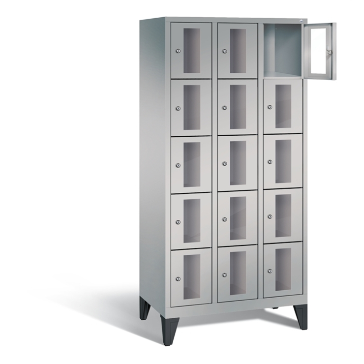 Stahl-Fächerschrank Classic, 3 Abteile mit 5 Fächern, Abteilbreite 300 mm, Korpus aus stabiler Stahlkonstruktion mit hochwertiger Einbrennbeschichtung für hohe UV- und Korrosionsbeständigkeit, auf 100 mm hohem Sockel, mit Kunststoffgleitern als praktischer Schrank- und Fußbodenschutz, vorne zurückgesetzt, 15 Zylinderschlösser mit je 2 Schlüsseln, Schließkreis bis 1000 verschiedene Schließungen, Türen mit Anschlagsdämpfer, Türaufhängung in Drehbolzen, Maße (H x B x T): 1800 x 900 x 500... (mehr)? Papersmart hilft Ihnen, den besten Anbieter für Ihren gesamten Warenkorb zu ermitteln.