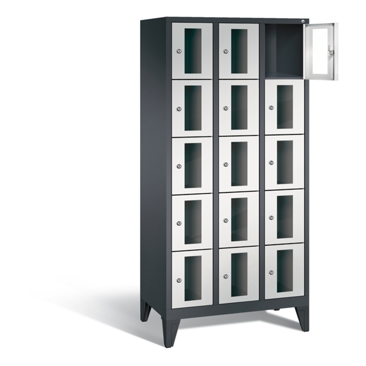 Stahl-Fächerschrank Classic, 1 Abteil mit 3 Fächern, Abteilbreite 400 mm, Korpus aus stabiler Stahlkonstruktion mit hochwertiger Einbrennbeschichtung für hohe UV- und Korrosionsbeständigkeit, auf 150 mm hohen Füßen aus Kunststoff für erweiterten Korrosionsschutz, 3 Zylinderschlösser mit je 2 Schlüsseln, Schließkreis bis 1000 verschiedene Schließungen, 1 Türen mit Sichtfenster aus Acrylglas für direkten Einblick, Türaufhängung in Drehbolzen mit Öffnungswinkel von ca. 110 Grad, inkl.... (mehr)? Papersmart hilft Ihnen, den besten Anbieter für Ihren gesamten Warenkorb zu ermitteln.