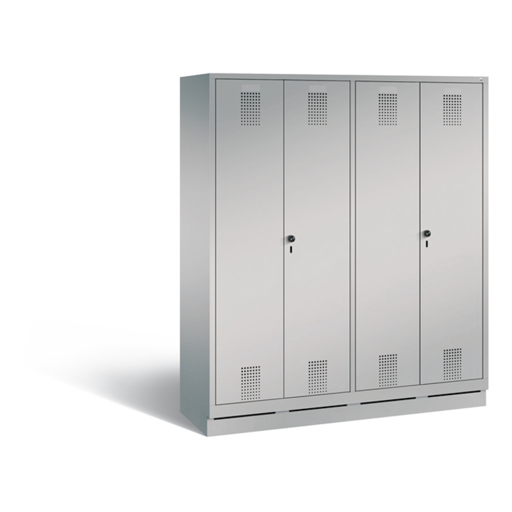 Stahl-Garderobenschrank Classic, auf untergebauter Sitzbank, Gestell aus stabilem Vierkant-Stahlrohr 30 x 30 mm, mit verstellbaren Bodengleitern für einfachen Niveauausgleich, 2 Abteile, Abteilbreite 400 mm, z-förmig unterteilt für 4 Personen, Korpus aus stabiler Stahlkonstruktion mit hochwertiger Einbrennbeschichtung für hohe UV- und Korrosionsbeständigkeit, innen komfortable Hängemöglichkeit langer Kleidungsstücke trotz geringem Platzangebot, je Fach 1 stabile Garderobenstange aus... (mehr)? Papersmart hilft Ihnen, den besten Anbieter für Ihren gesamten Warenkorb zu ermitteln.