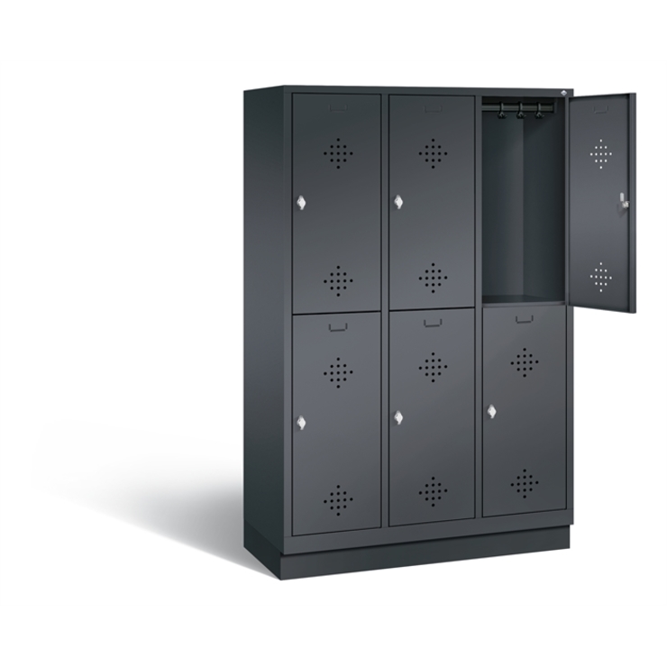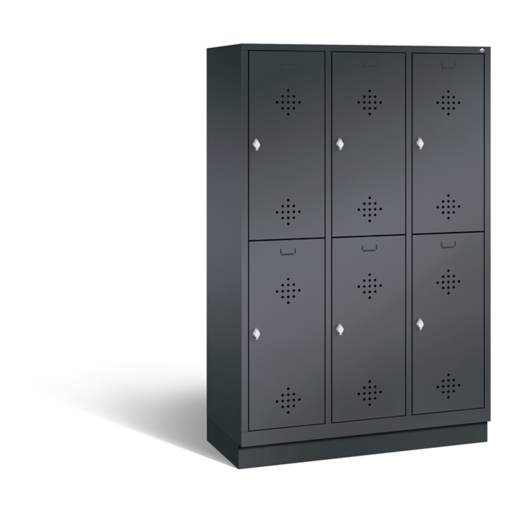 Stahl-Fächerschrank Classic, 2 Abteile mit 3 Fächern, Abteilbreite 300 mm, Korpus aus stabiler Stahlkonstruktion mit hochwertiger Einbrennbeschichtung für hohe UV- und Korrosionsbeständigkeit, auf 150 mm hohen Füßen aus Kunststoff für erweiterten Korrosionsschutz, 6 Zylinderschlösser mit je 2 Schlüsseln, Schließkreis bis 1000 verschiedene Schließungen, Türen mit Anschlagsdämpfer, Türaufhängung in Drehbolzen, Maße (H x B x T): 1850 x 610 x 500 mm, Korpus: RAL 7035 Lichtgrau,... (mehr)? Papersmart hilft Ihnen, den besten Anbieter für Ihren gesamten Warenkorb zu ermitteln.