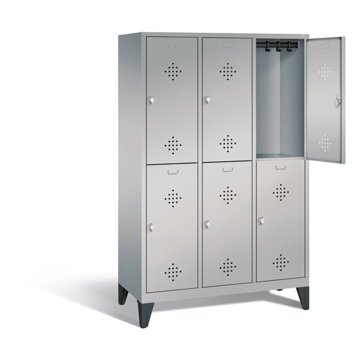 Stahl-Fächerschrank Classic, 1 Abteil mit 3 Fächern, Abteilbreite 300 mm, Korpus aus stabiler Stahlkonstruktion mit hochwertiger Einbrennbeschichtung für hohe UV- und Korrosionsbeständigkeit, auf 150 mm hohen Füßen aus Kunststoff für erweiterten Korrosionsschutz, 3 Zylinderschlösser mit je 2 Schlüsseln, Schließkreis bis 1000 verschiedene Schließungen, 1 Türen mit Sichtfenster aus Acrylglas für direkten Einblick, Türaufhängung in Drehbolzen mit Öffnungswinkel von ca. 110 Grad, inkl.... (mehr)? Papersmart hilft Ihnen, den besten Anbieter für Ihren gesamten Warenkorb zu ermitteln.