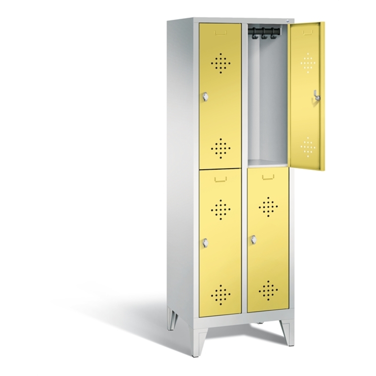 Doppelstöckiger Stahl-Garderobenschrank Evolo, 1 Abteil mit 2 Fächern, Abteilbreite 300 mm, Korpus aus stabiler Stahlkonstruktion mit hochwertiger Einbrennbeschichtung für hohe UV- und Korrosionsbeständigkeit, innen je Fach 1 stabile Garderobenstange aus Ovalprofil mit 3 verdrehsicheren Schiebehaken, auf 100 mm hohem Sockel, mit Kunststoffgleitern als praktischer Schrank- und Fußbodenschutz, vorne zurückgesetzt, 2 Ergonomische Sicherheits-Drehriegel für Vorhängeschlösser inkl.... (mehr)? Papersmart hilft Ihnen, den besten Anbieter für Ihren gesamten Warenkorb zu ermitteln.
