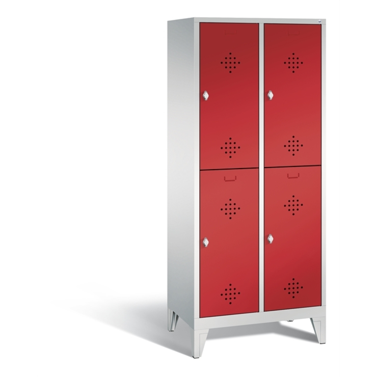 Doppelstöckiger Stahl-Garderobenschrank Classic, 2 Abteile mit je 2 Fächern, Abteilbreite 300 mm, Korpus aus stabiler Stahlkonstruktion mit hochwertiger Einbrennbeschichtung für hohe UV- und Korrosionsbeständigkeit, innen je Fach 1 stabile Garderobenstange aus Ovalprofil mit 3 verdrehsicheren Schiebehaken, auf 150 mm hohen Füßen, aus Kunststoff für optimalen Korrosionsschutz, 4 Drehriegel für Vorhängeschlösser, 4 Türen mit Anschlagsdämpfer und mittiger Verstärkung für hohe Stabilität,... (mehr)? Papersmart hilft Ihnen, den besten Anbieter für Ihren gesamten Warenkorb zu ermitteln.