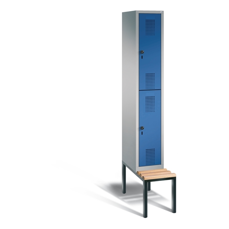 Stahl-Garderobenschrank Evolo, als Straßen- und Berufskleidungsschrank, 2 Abteile für 1 Person, Abteilbreite 300 mm, 1 Tür über 2 Abteile, rechts angeschlagen, Korpus aus stabiler Stahlkonstruktion mit hochwertiger Einbrennbeschichtung für hohe UV- und Korrosionsbeständigkeit, innen je Abteil 1 Ablageboden, darunter 1 stabile Garderobenstange aus Ovalprofil mit 3 verdrehsicheren Schiebehaken, Schrankboden hinten mit großflächigem Luftdurchlass, auf 100 mm hohem Sockel, mit... (mehr)? Papersmart hilft Ihnen, den besten Anbieter für Ihren gesamten Warenkorb zu ermitteln.