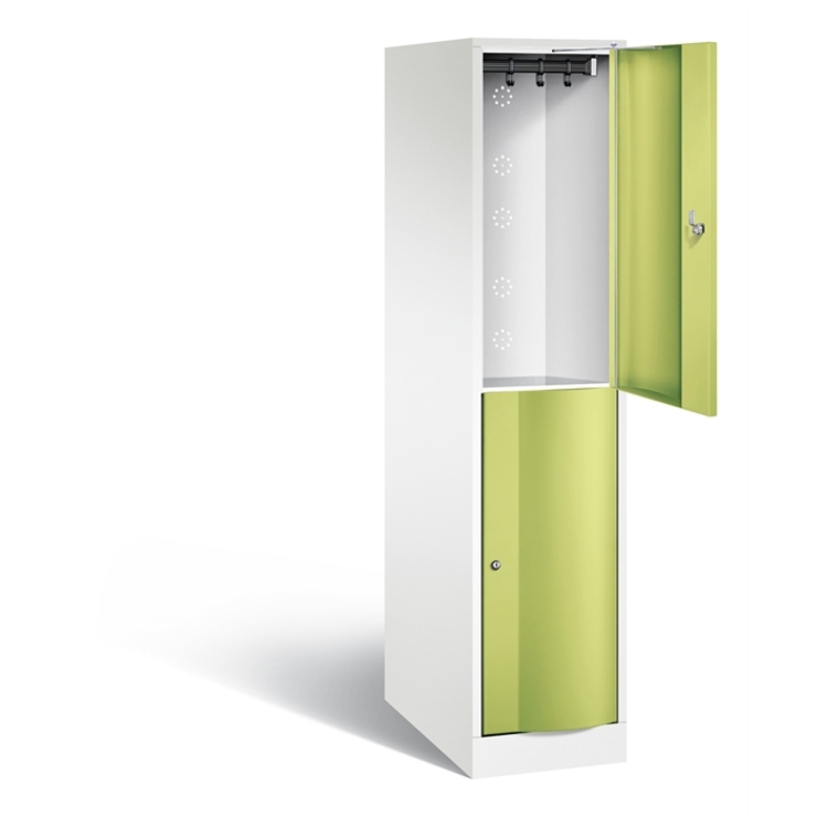 Doppelstöckiger Stahl-Garderobenschrank Classic, 1 Abteil mit 2 Fächern, Abteilbreite 300 mm, Korpus aus stabiler Stahlkonstruktion mit hochwertiger Einbrennbeschichtung für hohe UV- und Korrosionsbeständigkeit, innen je Fach 1 stabile Garderobenstange aus Ovalprofil mit 3 verdrehsicheren Schiebehaken, auf 100 mm hohem Sockel, mit Kunststoffgleitern als praktischer Schrank- und Fußbodenschutz, vorne zurückgesetzt, 2 Drehriegel für Vorhängeschlösser, 2 Türen mit Anschlagsdämpfer und... (mehr)? Papersmart hilft Ihnen, den besten Anbieter für Ihren gesamten Warenkorb zu ermitteln.