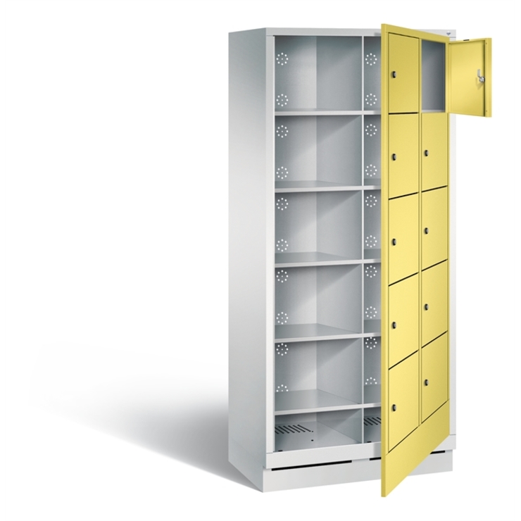 Stahl-Schließfachschrank Intro, XL, 2 Abteile mit 5 Fächern, Abteilbreite 400 mm, Korpus aus stabiler Stahlkonstruktion mit hochwertiger Einbrennbeschichtung für hohe UV- und Korrosionsbeständigkeit, Türen doppelwandig für hohe Stabilität, mit Anschlagsdämpfer, Türaufhängung durchgängig mit robustem Scharnierband, rechts angeschlagen, Rückwand mit großflächigem Luftdurchlass und 18 mm Wandabstandshaltern, auf 100 mm hohem Sockel, 10 Zylinderschlösser mit je 2 Schlüsseln, Schließkreis... (mehr)? Papersmart hilft Ihnen, den besten Anbieter für Ihren gesamten Warenkorb zu ermitteln.