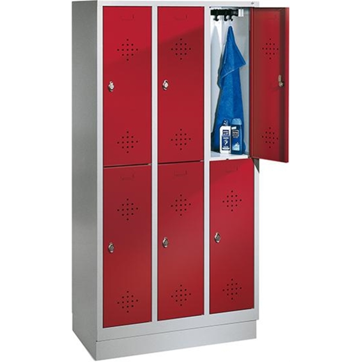 Fächerschrank mit Kunststofffüßen, 150 mm hoch (Gesamthöhe 1850 mm) • Viele Fächer auf kleinstem Raum Wahlweise mit 3, 4 oder 5 Fächern übereinander bei 1, 2, 3 oder 4 Abteilen nebeneinander. Lichte Fachmaße: B 230xT 465 mm. (B 330 mm auf Anfrage lieferbar.) • Langlebige Stahlblechkonstruktion Erhöhter Korrosionsschutz durch Schrankfüße aus Kunststoff. • Abschließbare Türen Schließung über Zylinderschlösser mit je 2 Schlüsseln. Rechts angeschlagen. Einwandige Ausführung mit glatter... (mehr)? Papersmart hilft Ihnen, den besten Anbieter für Ihren gesamten Warenkorb zu ermitteln.