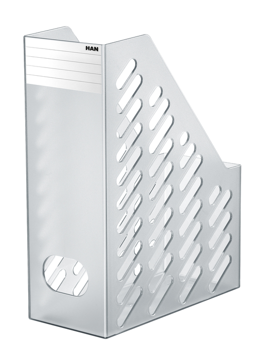 Stehsammler BRILLANT XXL für Formate bis DIN A4 / C4. Groß, größer, XXL. Klassisch und stilvoll in transluzenter Optik. Hochwertig, stabil und standsicher durch praktische 115 mm Außenbreite. Nichts kippt mehr, nichts liegt herum, alles ist schön sortiert. Extra hohe Vorderseite um Dokumente sicher zu halten. Mit seitlichem Raster, dass Einsicht auf Kataloge, Prospekte, Zeitschriften, etc. erlaubt. Mit praktischem Griffloch im Rückenteil für eine schnelle Entnahme. Inkl. selbstklebendem Rückenschild, informiert zuverlässig über den Inhalt. Das Rückenschild kann an der Vorder- oder Rückseite befestigt werden. Rückenschilder können im 8er Set unter der Art.-Nr. 94100 nachbestellt werden. Zur Aufbewahrung von umfangreichen Unterlagen bis DIN A4 / C4 geeignet. Extra großes Fassungsvermögen: 108 mm. Made in Germany. Außenmaße (B x T x H): 115 x 246 x 315 mm. Höhe vorne: 148 mm. Material: hochwertiger Kunststoff, Polystyrol (PS). Farbe: transluzent-grau.