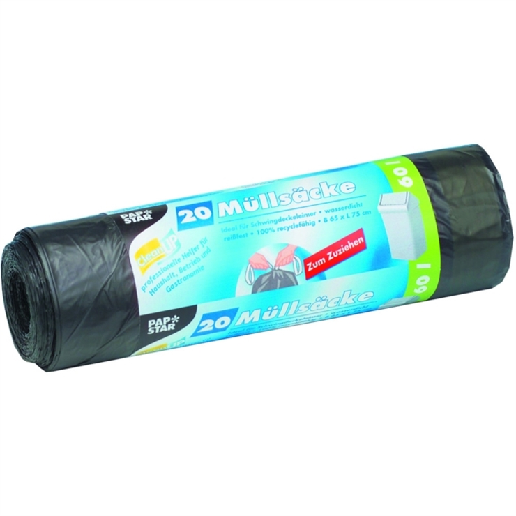 PAPSTAR Müllsack, LDPE, 0,022 mm, 60 l, 650 x 750 mm, grau (20 Stück)