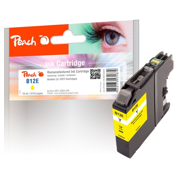 Peach Tintenpatrone gelb, kompatibel zu Brother LC-12EY