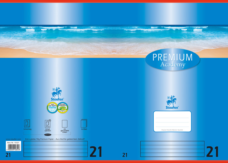 Staufen Schulheft Premium, A4, 16 Bl., Lin.21, Liniert