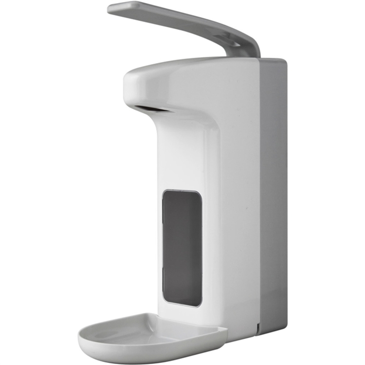 TEMDEX® Seifenspender, Acrylnitril-Butadien-Styrol, abschließbar, 12 x 23 x 34 cm, weiß/grau
