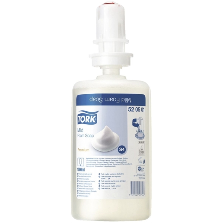 TORK® Seifenschaum Mild, Nachfüllung, Flasche, 6 x 1.000 ml, parfümiert (6.000 ml)