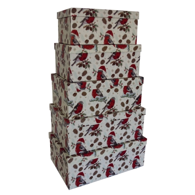 Weihnachtsgeschenkkarton Vögel - 5 tlg., rechteckig